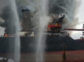 Twenty-two crew members have been evacuated from a burning bulker named MV Golden Ocean while the ship was in ballast southeast of Bontang, Kalimantan, Indonesian Directorate General of Maritime Trans...